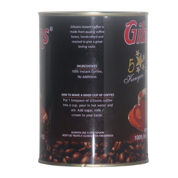 Additionally, drinking coffee has been linked to numerous health benefits, including a reduced risk of type 2 diabetes and improved liver health. With no added sugars or artificial fillers, Gibsons Premium Instant Coffee gives you 100% pure coffee goodness in every spoonful. Simply add hot water to enjoy the authentic, high-quality taste of Kenyan coffee heritage, instantly.